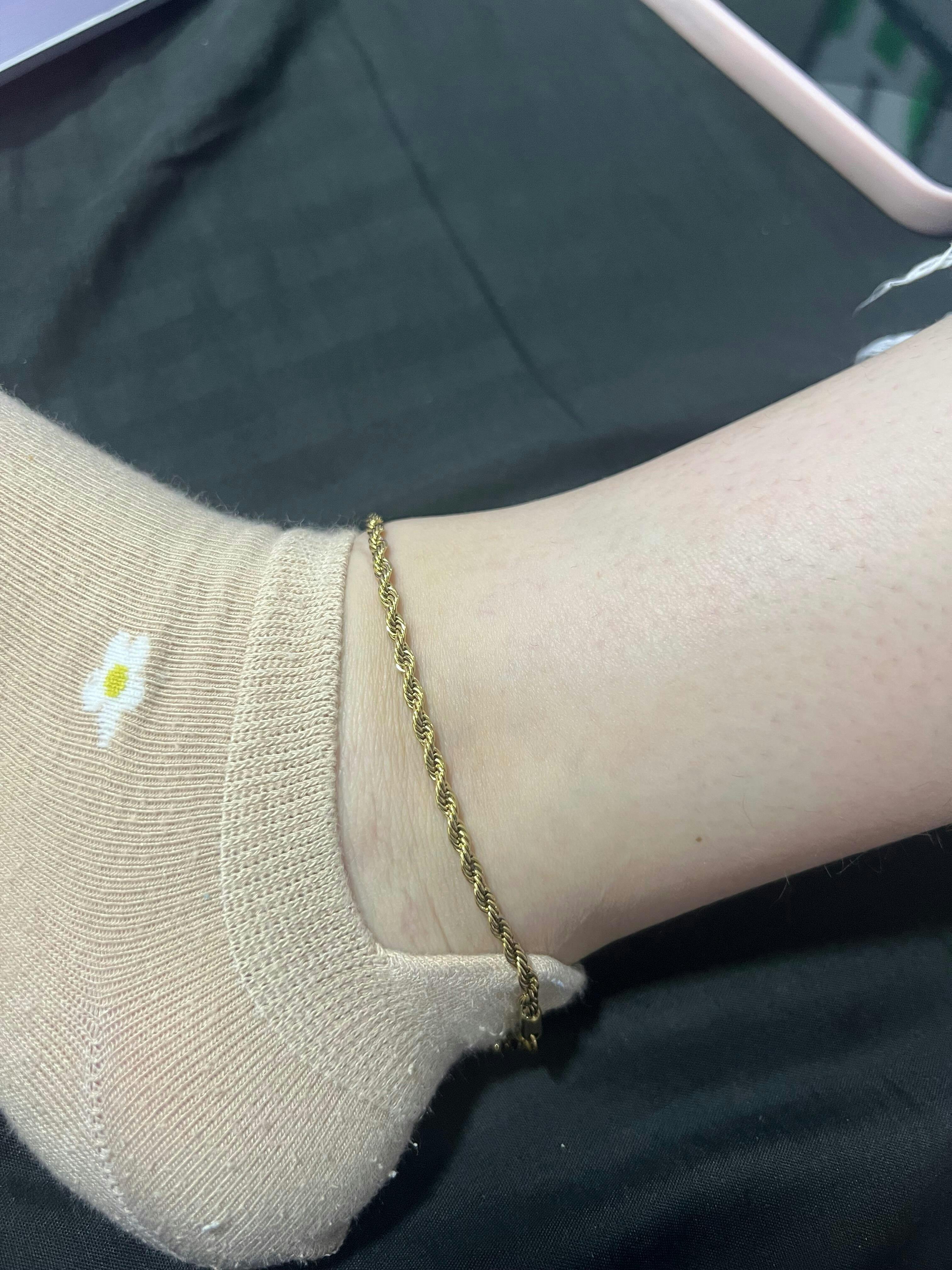Tobillera Lazo de Oro Laminado cautiva con su diseño trenzado que simboliza conexión y armonía, su acabado brillante aporta un toque de elegancia discreta, perfecta para acompañarte en el día a día o en ocasiones especiales, una joya sutil y versátil que realza tu estilo con distinción.